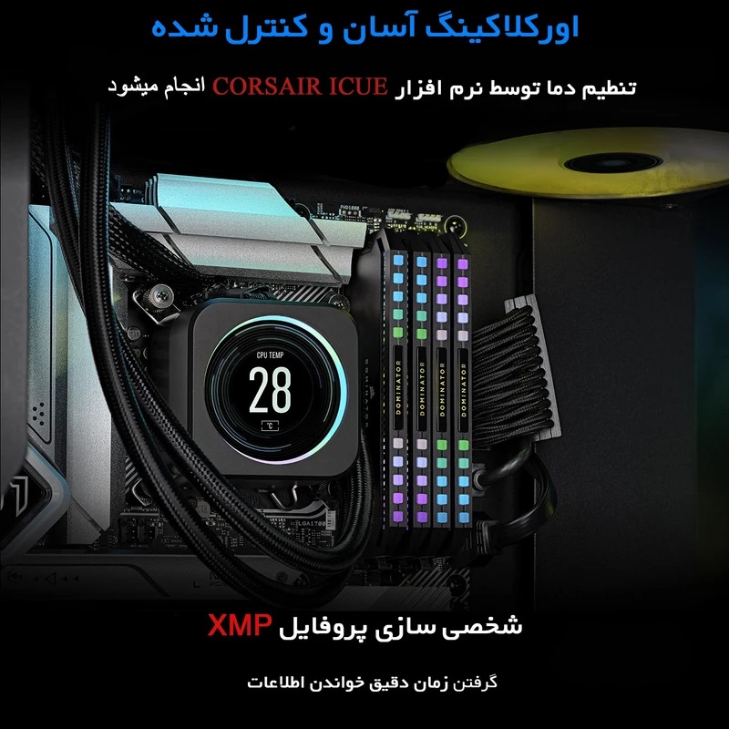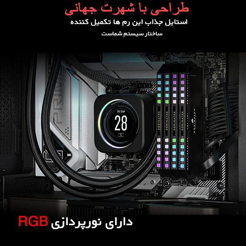 رم دسکتاپ DDR5 دو کاناله 6000 مگاهرتز CL30 کورسیر مدل Dominator Platinum RGB ظرفیت 64 گیگابایت؛ استفاده از رم کورسیر RGB برای سیستمهای گیمینگ میتواند یکی از بهترین گزینهها باشد. این رمها در انواع مختلفی عرضه میشوند و با بهرهگیری از فناوری ARGB و نرمافزار اختصاصی کورسیر، امکان همگامسازی نورپردازی رم با سایر قطعات کامپیوتر وجود دارد. لازم به ذکر است که رمهای کورسیر RGB و سایر برندها تنها در مدلهای دسکتاپ موجود هستند و به دلیل ضخامت بیشتر، استفاده از آنها در لپتاپها ممکن نیست.