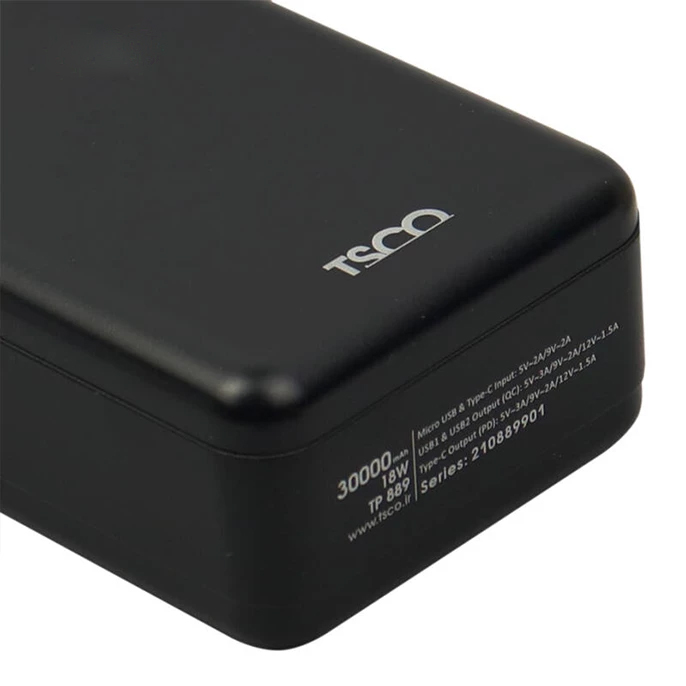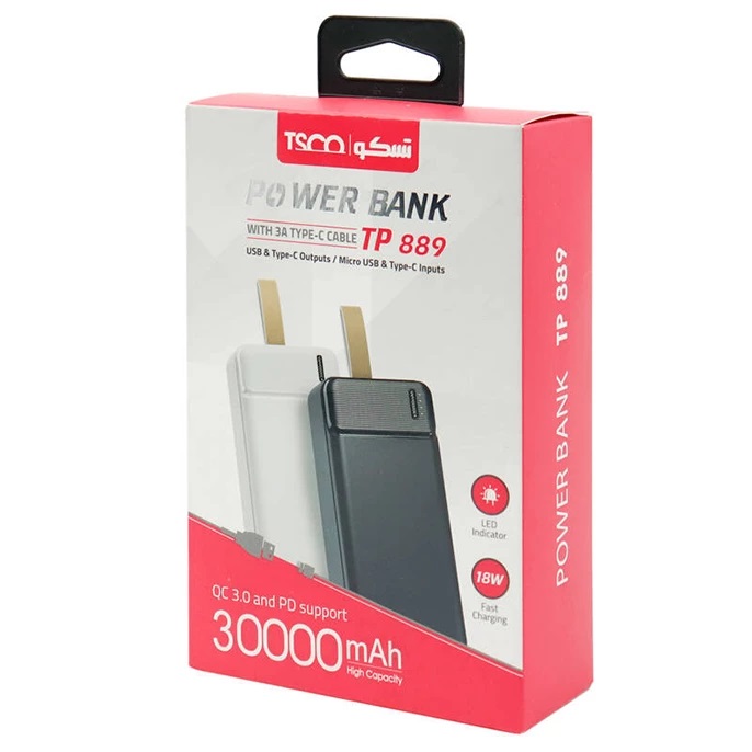 پاوربانک تسکو مدل TP 889 با ظرفیت 30000 میلی آمپر در دو رنگ سفید و مشکی به بازار عرضه شده و در مدت زمان کوتاهی توانسته نظر بسیاری از کاربران را جلب کند.