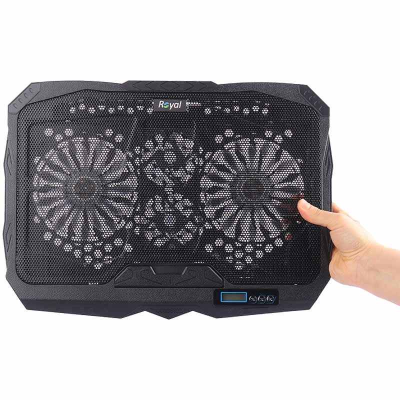 پایه خنک کننده لپ تاپ رویال مدل RFL-320؛ دارای 4 عدد فن خنک کننده دو عدد 140 میلی متری و دو عدد 70 میلی متری کم صدا بوده که باعث کاهش دمای محفظه لپ تاپ شما خواهد شد. کولپد رویال مدل 320 دارای نمایشگر LED جهت نمایش سرعت فن، مجهز به دکمه فیزیکی جهت خاموش و روشن / افزایش و کاهش سرعت فن می باشد. که حداکثر میزان سرعت چرخش فن ها برابر با %10±1000 دور در دقیقه بوده و همچنین نورپردازی داخلی آبی رنگ باعث زیبابی این کول پد شده است.