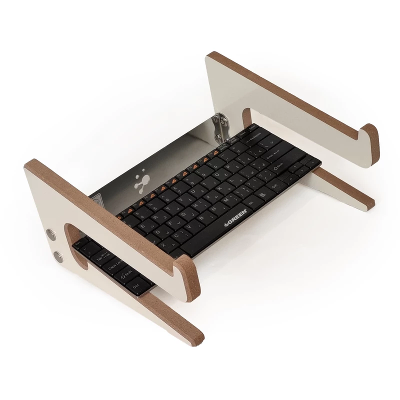 این پایه لپتاپ به صورت فری سایز طراحی شده و مناسب لپتاپهایی از 13 اینچ تا 17 اینچ است. جنس بدنه این محصول از ام دی اف 16میلیمتری مرغوب و فولاد ضدزنگ آبکاری شده است. همه برشها با تجهیزات تمام اتوماتیک انجام شده، همینطور لبههای برش خورده گرد شده تا کاربر حس خوشایندتری از لمس محصول داشته باشد. این محصول به راحتی مونتاژ و دمونتاژ میشودو قابلیت جابجایی همراه لپتاپ را دارد. با توجه به مکانیزم اتصال این پایه لپتاپ هیچ گونه لقی در پایه وجود ندارد.