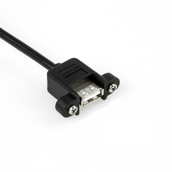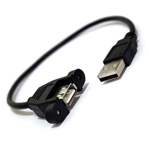 کابل افزایش طول USB پنلی طول 50 سانتی متری؛ با کابل افزایش طول 50 سانتی پیچ شو شما میتوانید دستگاه خود را به پورت USB کامپیوترتان برای شارژ و یا همگام سازی متصل نمایید. وجود دو عدد پیچ در سمت مادگی پورت USB کابل افزایش طول 50 سانتی پیچ شو به شما این امکان را میدهد که این کابل را داخل کیس, دستگاه های DVR یا در داخل خودرو پیچ کنید.